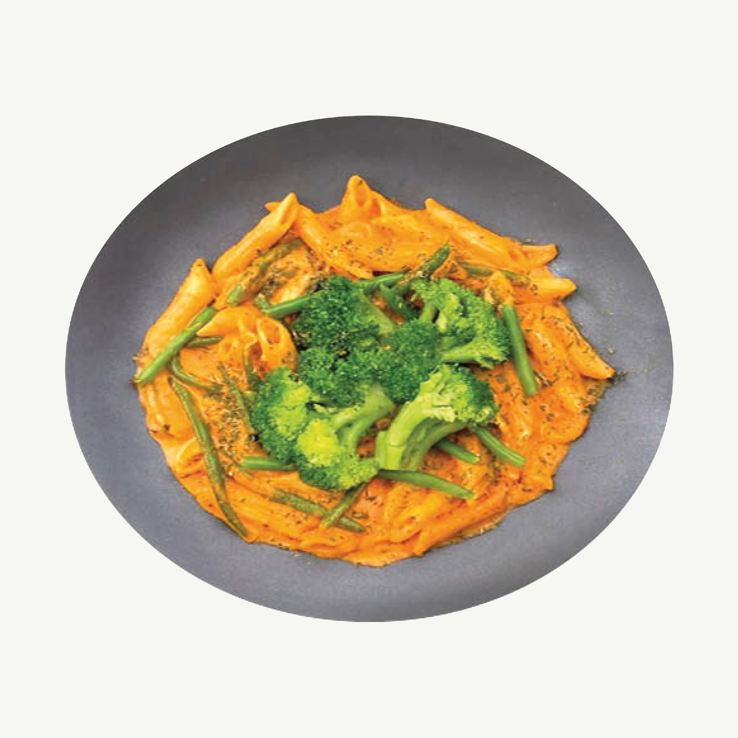Des pâtes gourmandes avec brocolis, champignons et haricots verts, nappées d’une sauce rosée crémeuse. Une explosion de saveurs pour les amateurs de cuisine végétarienne.